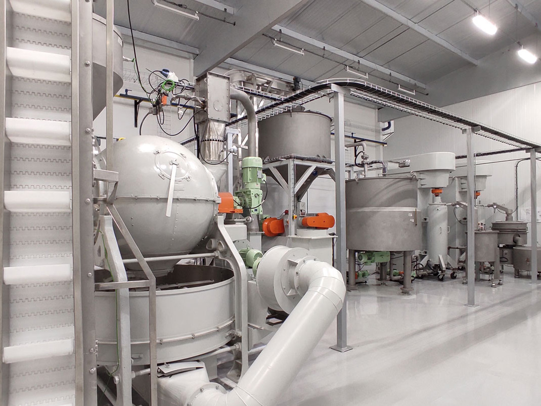 Equipamentos na confecção da massa de chocolate são de última geração da marca Bühler, utilizados pelas principais marcas de chocolate do mundo.
